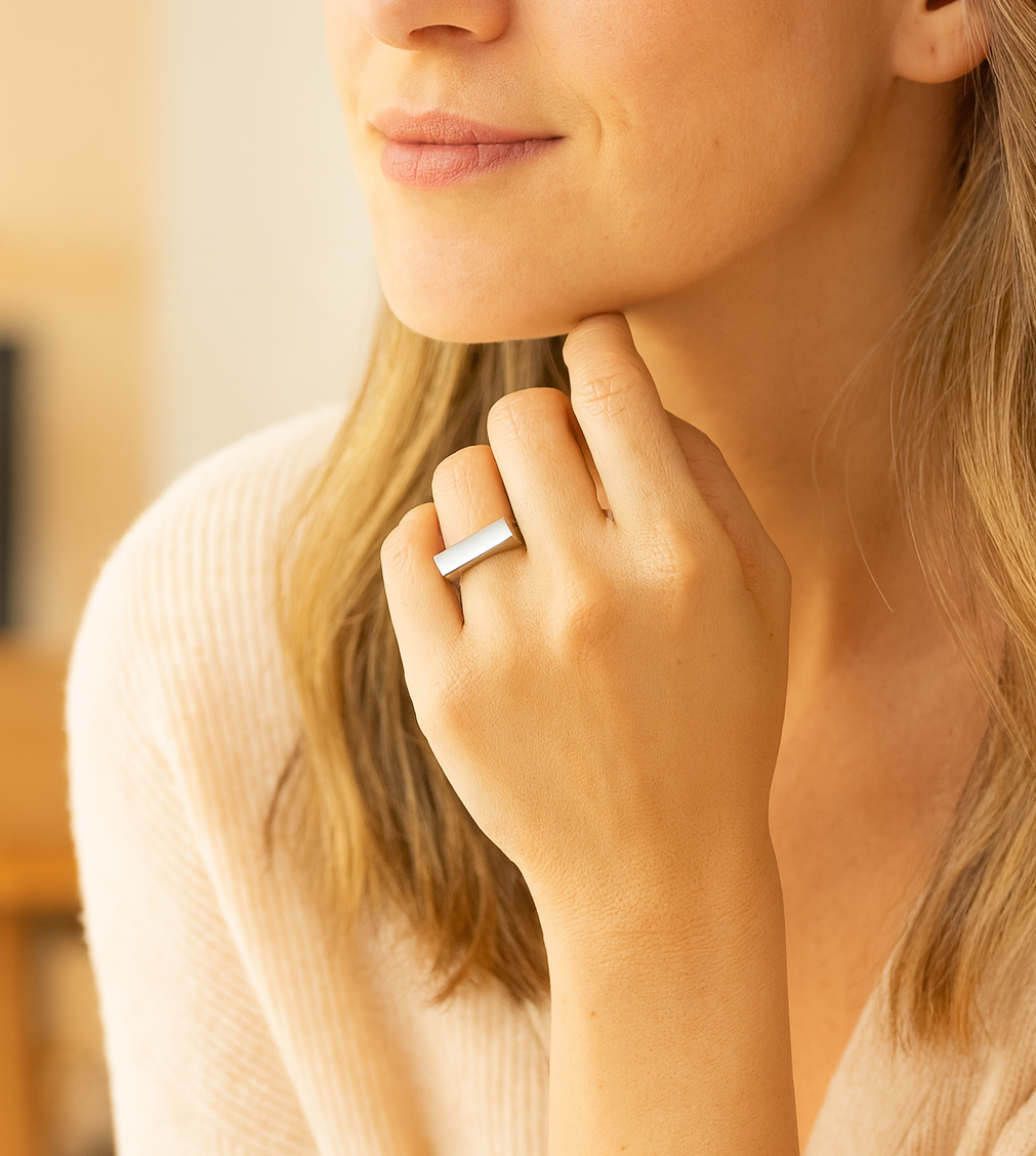 The Pillar Cremation Ring is a sleek and modern way to keep your loved one close at all times. Thoughtfully designed with clean, minimalist lines, this elegant ring features a discreet inner compartment that holds a small amount of ashes—serving as a personal and lasting tribute. The compartment is accessed by gently unscrewing the side of the bar, allowing ashes to be securely placed inside. Crafted from durable stainless steel and available in multiple finishes, this ring blends sophistication and sentiment in one timeless piece.